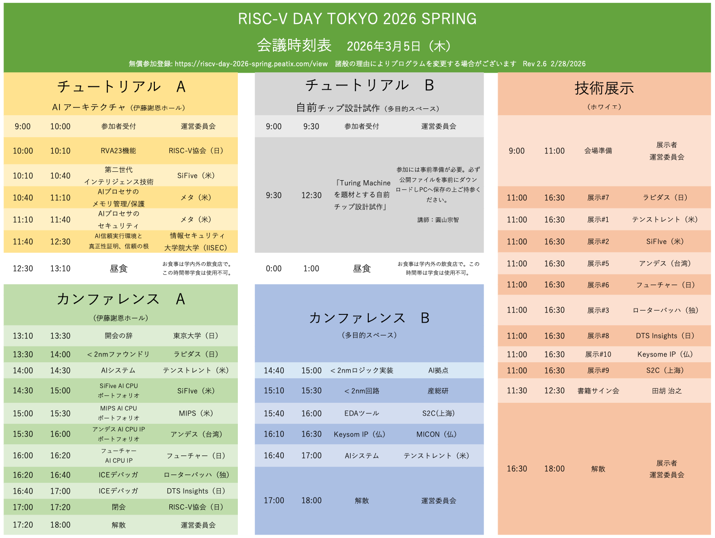 11:40-12:30 | TEE (Trusted Execution Environment) + Attestation + RoT (Root of Trust) on RISC-V | 須崎有康 (Kuniyasu Suzaki) 情報セキュリティ大学院大学 教授 |