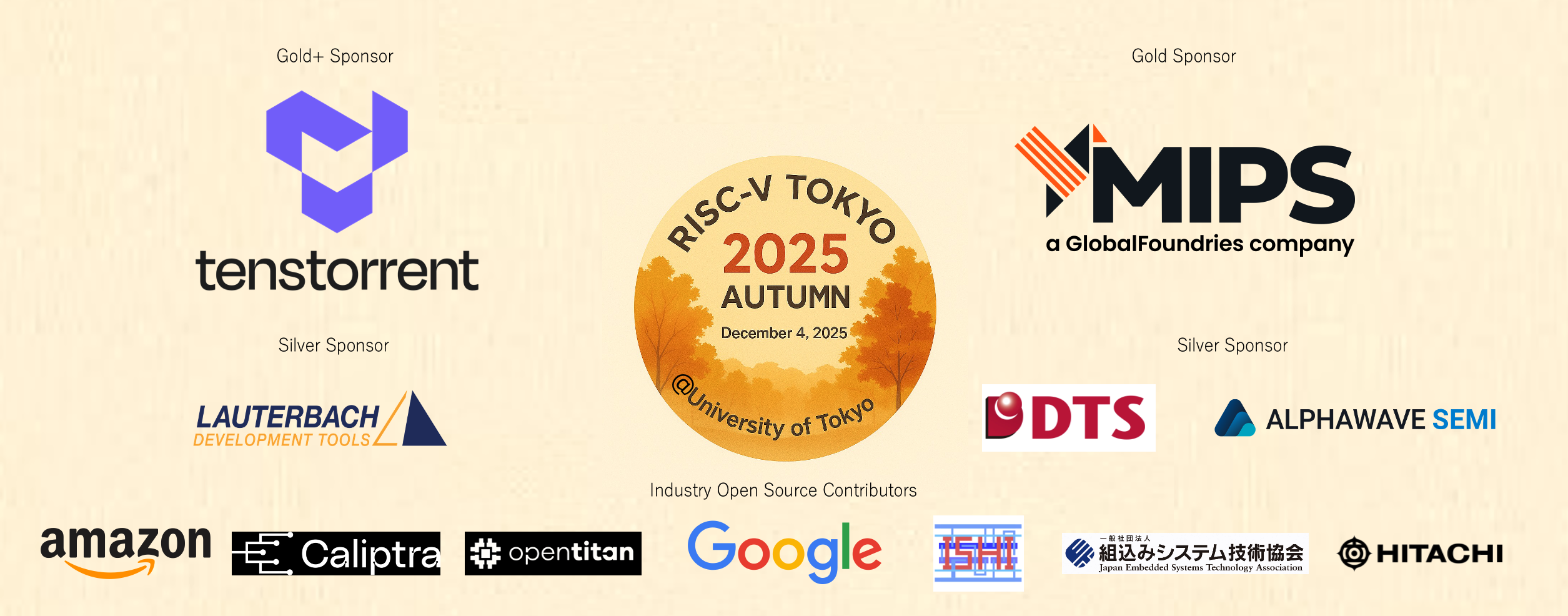 | 15:20-15:50 | RISC-V CPUチップ評価の実践と再現性検証 — FPGA・Google Open MPW、TinyTapeouによるJASA独自RISC-Vオープンプラットフォーム開発とGithub公開 | 小檜山 智久 | 一般社団法人 組込みシステム技術協会(JASA)RISC-V WG主査 | 株式会社 日立産機システム インフラシステム統括本部 事業管理部 兼 品質保証本部 主管技師, 黒川 能毅 | 一般社団法人 組込みシステム技術協会(JASA)RISC-V WG, 小林 正隆 | 一般社団法人 組込みシステム技術協会(JASA)RISC-V WG | 株式会社 日立産業制御ソリューションズ(HiICS) デジタル基盤ソリューション本部 セミコンダクタ第一設計部, 河崎 俊平 | SHコンサルティング株式会社 |